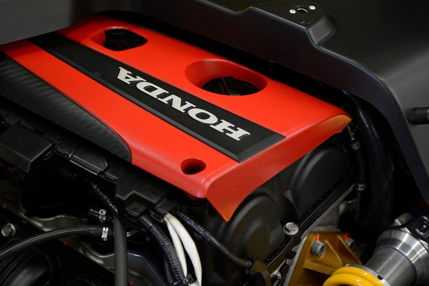 Весит Ariel Atom 4RR всего 669 кг, поэтому 532 л.с. для него — колоссальная мощность. Эта мощность извлекается из кастомного 2,0-литрового бензинового турбомотора, сделанного на базе хондовского блока K20C от Civic Type R, при этом даже сам блок модифицирован, а практически все «потрошки» и навесные компоненты новые, в том числе кованые поршни и шатуны, распредвалы, клапаны, пружины, форсунки, шпильки, прокладки, система смазки, система впуска с вынесенным наружу воздушным фильтром, выпускной коллектор из титана и многое другое. Давление наддува — 1,7 бар. Максимальная отдача — 532 л.с. при 8200 об/мин и 550 Нм при 5200 об/мин, но это при задействовании наиболее агрессивной программы управления Map 3, а есть ещё Map 2 (507 л.с., 450 Нм) и Map 1 (405 л.с., 380 Нм). Выбрать нужную программу можно прямо из салона — точнее из клетки, где сидят водитель и единственный пассажир.